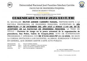 SUSTENTACIÓN DE TESIS DÍA MIERCOLES 17 DE DICIEMBRE DEL AÑO 2025 A HORAS 11:00 AM, EN EL AUDITORIO DE LA FACULTAD DE INGENIERIA PESQUERA,