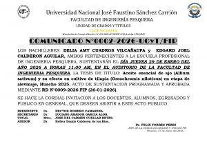 SUSTENTACIÓN DE TESIS: EL DÍA JUEVES 29 DE ENERO DEL AÑO 2026 A HORAS 11:00 AM, EN EL AUDITORIO DE LA FACULTAD DE INGENIERIA PESQUERA,