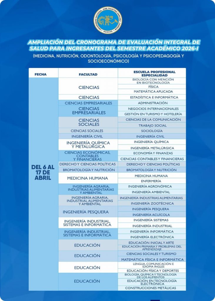 AMPLIACIÓN DEL CRONOGRAMA DE EVALUACIÓN – SEMESTRE ACADÉMICO 2026-I